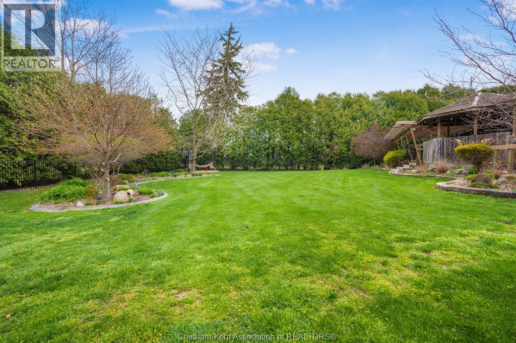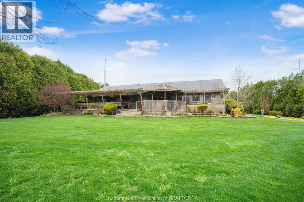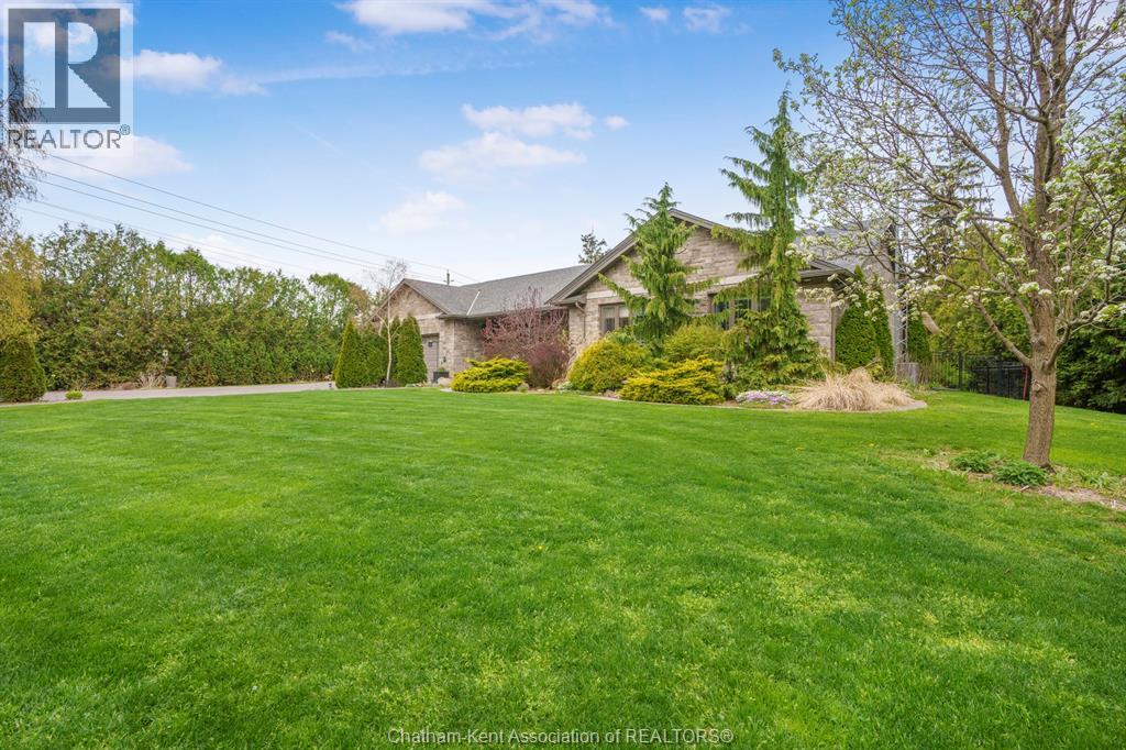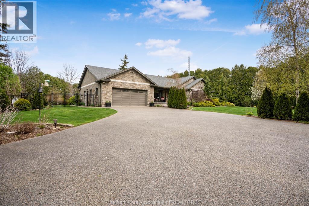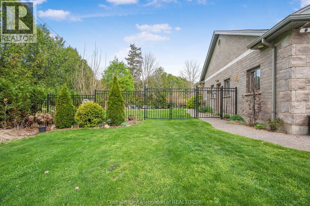 Welcome to your dream country escape! This all-brick rancher sits on just under 1 acre of private, cedar-wrapped land, offering 3 spacious bedrooms and 4 updated bathrooms. One of the main floor bathrooms features a luxurious freestanding soaker tub and heated floors for ultimate comfort. A double-car attached garage adds convenience, while the fully finished massive basement offers endless storage and living space. Relax or entertain on the expansive covered patio, complete with an outdoor kitchen style and gas BBQ setup, perfect for summer evenings. The fully fenced yard and scenic walking path around the home create a peaceful retreat. Surrounded by towering cedars for seclusion, this property combines privacy, modern updates, and country charm all in one beautiful package. Don’t miss this rare opportunity to enjoy the best of rural living with all the comforts of home! This home is located on the Southside of Chatham only seconds from HWY 401. (id:4555)