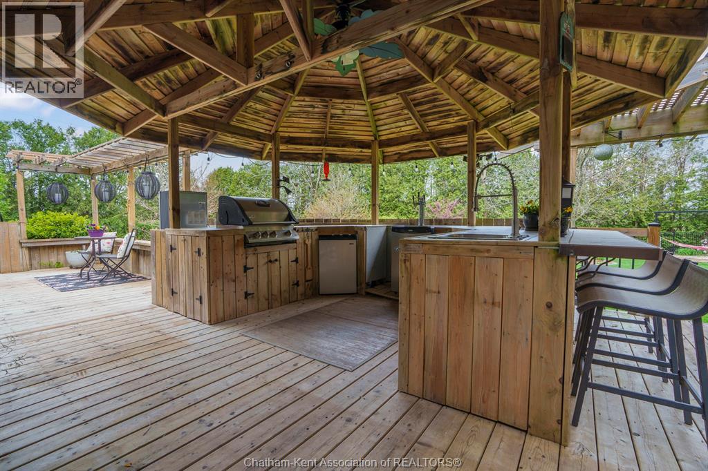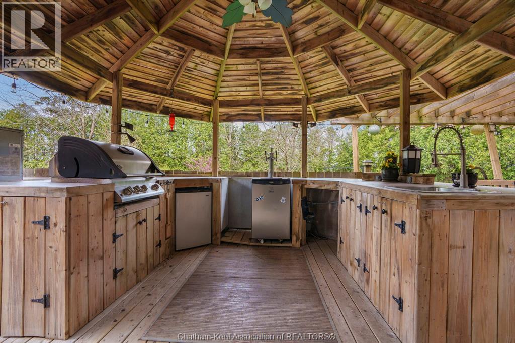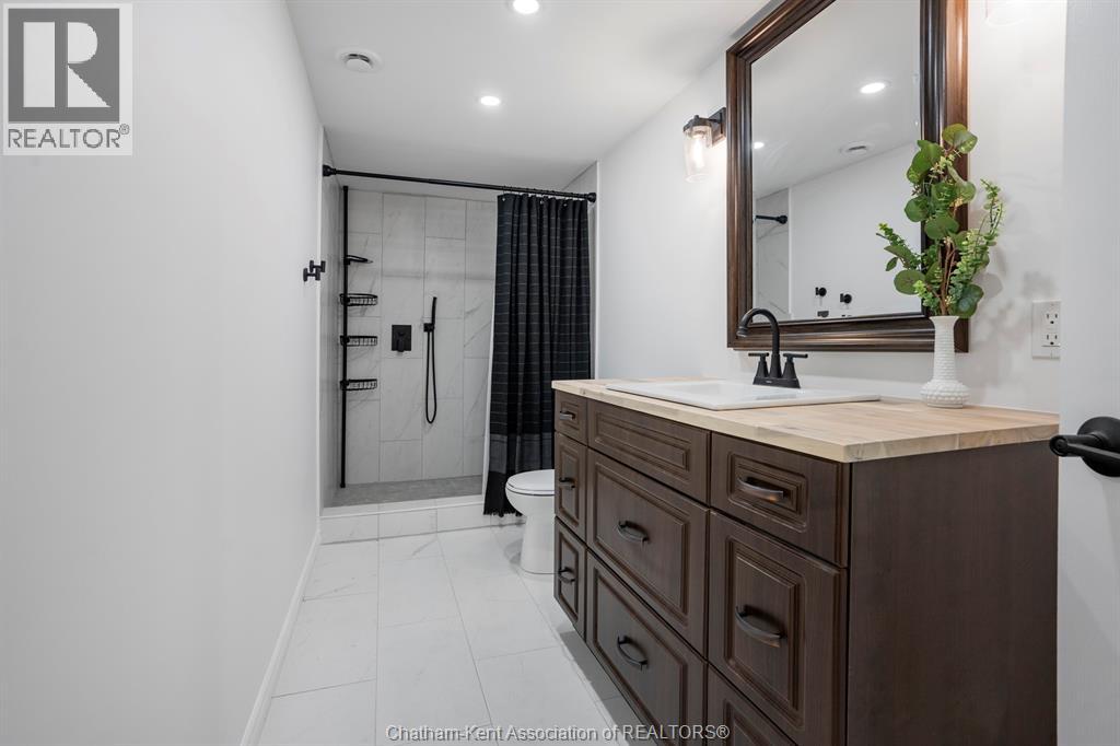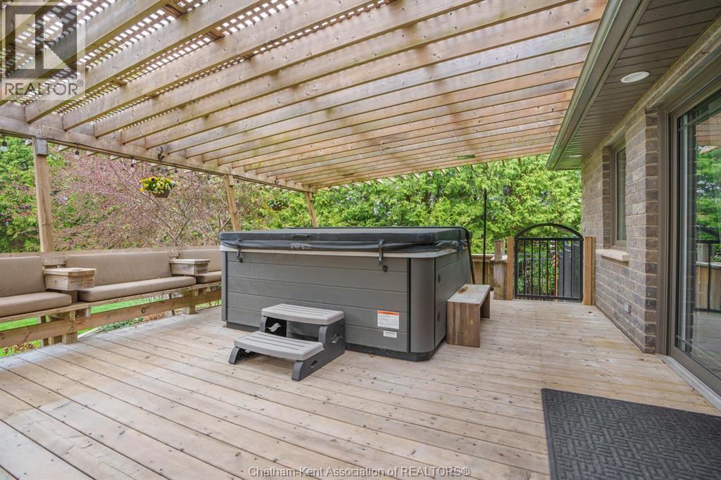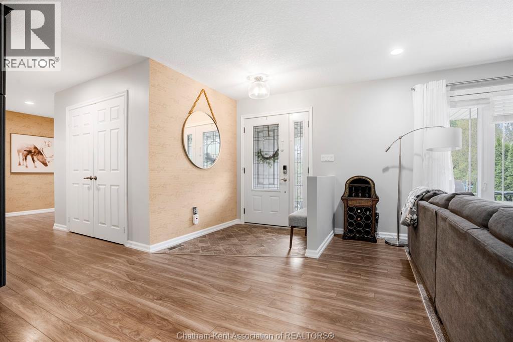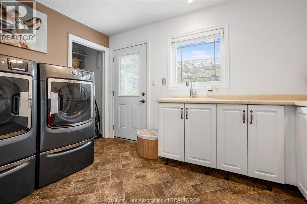 Welcome to your dream country escape! This all-brick rancher sits on just under 1 acre of private, cedar-wrapped land, offering 3 spacious bedrooms and 4 updated bathrooms. One of the main floor bathrooms features a luxurious freestanding soaker tub and heated floors for ultimate comfort. A double-car attached garage adds convenience, while the fully finished massive basement offers endless storage and living space. Relax or entertain on the expansive covered patio, complete with an outdoor kitchen style and gas BBQ setup, perfect for summer evenings. The fully fenced yard and scenic walking path around the home create a peaceful retreat. Surrounded by towering cedars for seclusion, this property combines privacy, modern updates, and country charm all in one beautiful package. Don’t miss this rare opportunity to enjoy the best of rural living with all the comforts of home! This home is located on the Southside of Chatham only seconds from HWY 401. (id:4555)